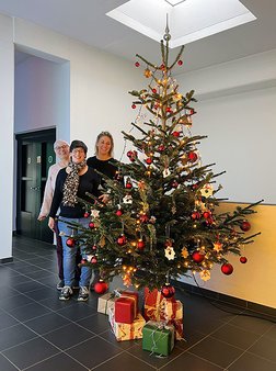 Danke an die fleissigen Weihnachtshelferinnen des Heilpädagogischen Zentrums Liechtenstein (HPZ). In unserem Auftrag haben sie den KYBERNA Weihnachtsbaum am Hauptsitz in Vaduz prächtig geschmückt.
